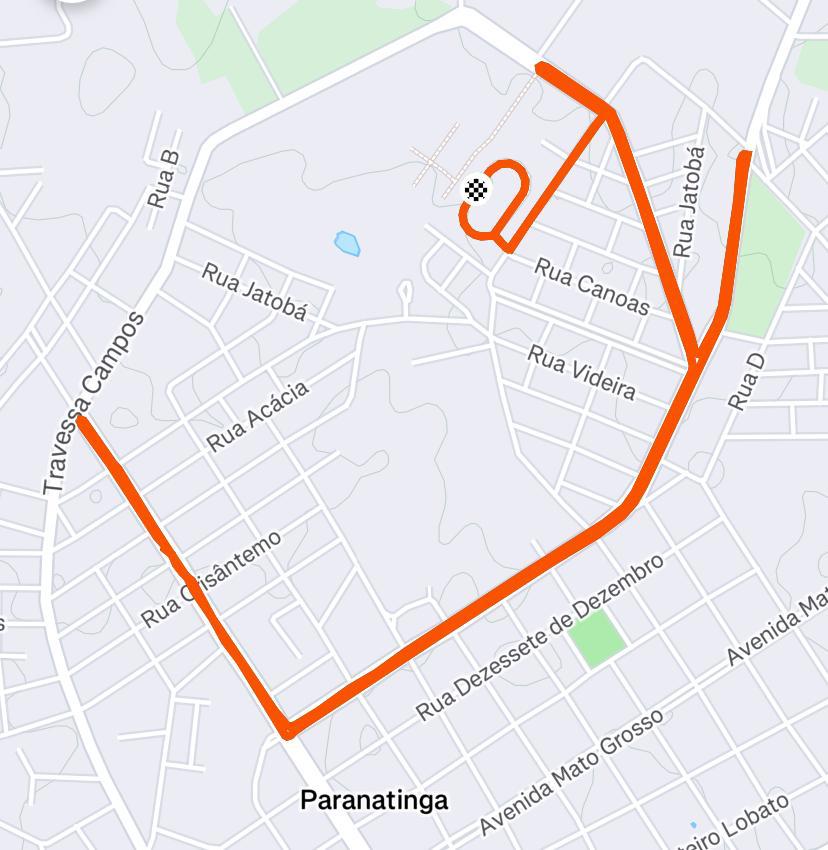 Artigo 2º. A largada da prova será às 06h30 (caminhada e corrida – 7 km), em Paranatinga-MT, com saída do Estádio Municipal Dedézão, localizado na Rua 7 de Setembro, seguindo o percurso pela Rua 7 de Setembro, Avenida Aeroporto, Avenida XV de Novembro, Avenida Brasil, com retorno em frente ao Hospital Monte Siani, passando pela rotatória da Prefeitura Municipal, continuando pela Avenida XV de Novembro até a rotatória em frente ao Cemitério, retornando pela Avenida Brasil, Avenida Aeroporto, e novamente pela Rua 7 de Setembro, com chegada no mesmo local da saída.