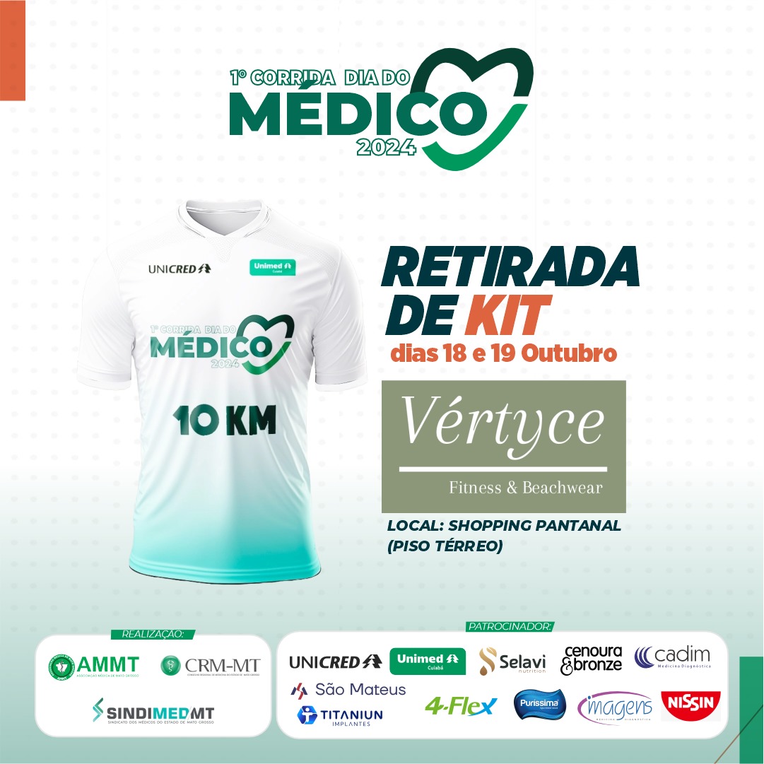 A 1ª CORRIDA DIA DO MÉDICO, é evento esportivo que vem proporcionar a prática de atividade física através da corrida de rua aos membros do Conselho Regional de Medicina de Mato Grosso-CRMMT, da Associação Médica de Mato Grosso-AMMT e do Sindicatos dos Médicos de Mato Grosso-SINDIMEDMT, também para seus familiares, e todos praticantes de corrida de Cuiabá e de todo estado de Mato Grosso; a corrida terá largada, chegada e maior parte do percurso na Estrada do Moinho (Avenida Arquimedes Pereira Lima).