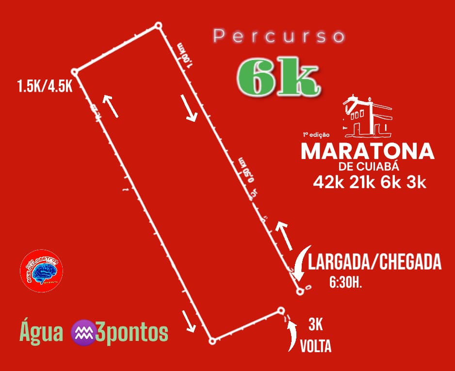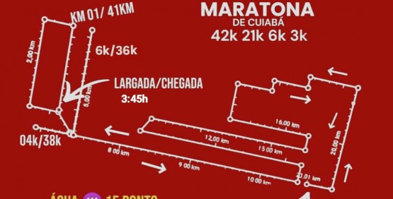 A 1° Maratona e 3° Meia Maratona Cuiabá Cidade do Sol consistirá em 3 percursos: 3KM caminhada, 6KM, 21k e 42KM corrida dia 22 de Dezembro de 2024,com qualquer condição climática, desde que não ofereça riscos aos participantes e expectadores.