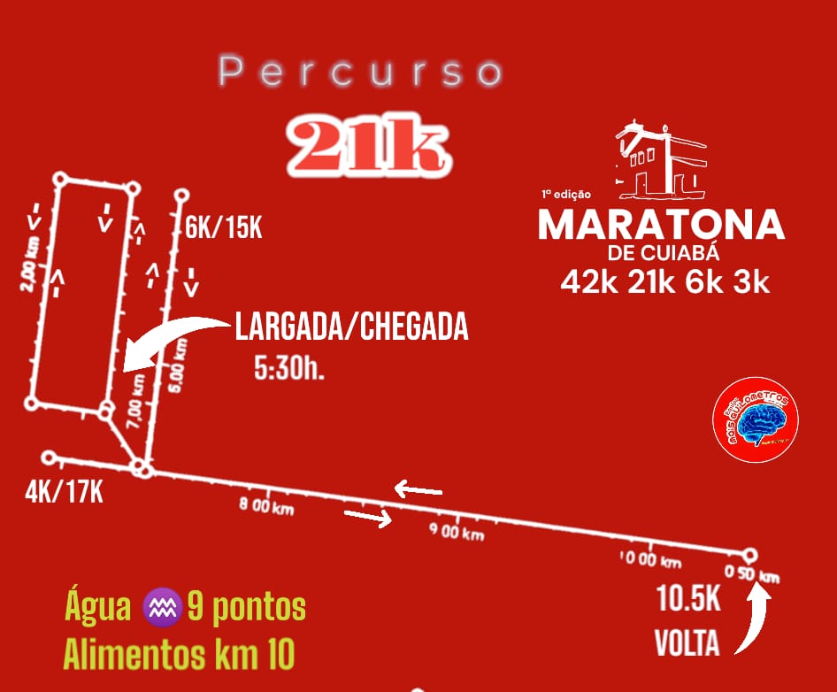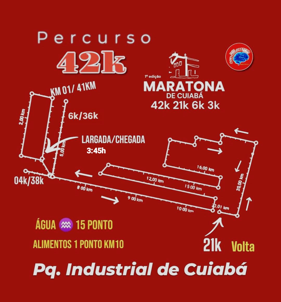 A 1° Maratona e 3°Meia Maratona Cuiabá Cidade do Sol foi idealizado e organizado pelo Circuito Mais Quilômetros de corrida de CUIABÁ MT e contará com apoio de parceiros no evento.
