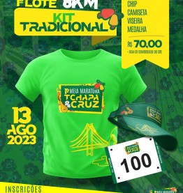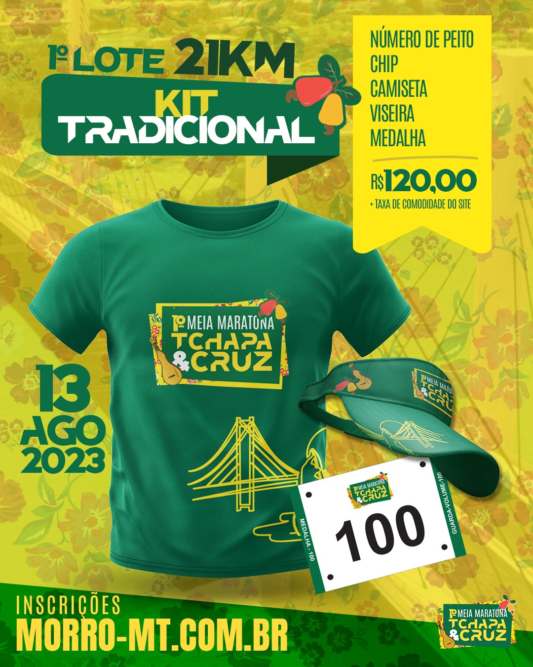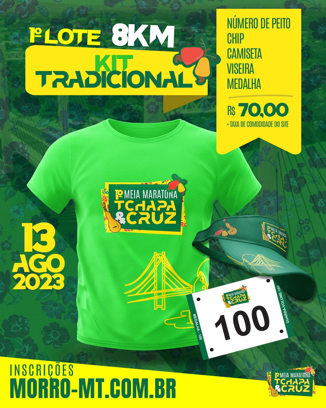 - Kit Tradicional (número de peito, chip, camiseta, viseira e medalha na chegada da prova) – R$ 140,00 + taxa de comodidade do site;
