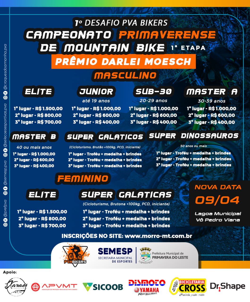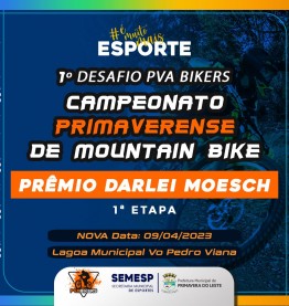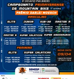 O 1º Desafio PVABIKERS – 1º Etapa do Campeonato Primaverense de MTB será realizado no domingo dia 09 de abril de 2023.