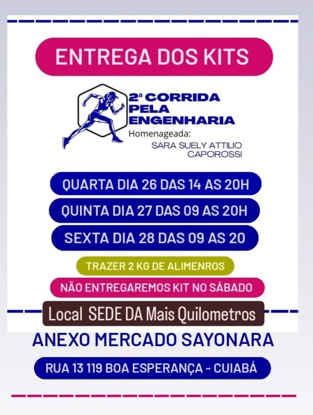 b) A retirada do KIT deverá ser realizada pelo atleta inscrito, mediante apresentação de um documento com foto e mais 2 kilos de alimentos não perecível.