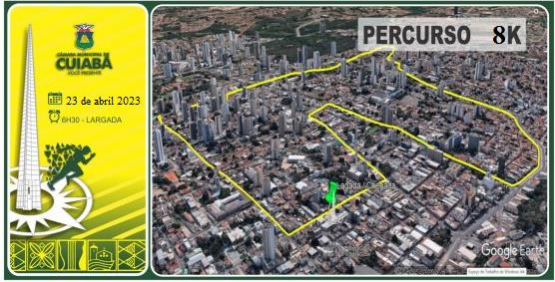 Com a largada em frente a Câmara Municipal de Cuiabá, às 06h30, a corrida será disputada em um percurso com distância de 8km. A prova terá a duração máxima de 02 horas com a supervisão técnica será da Federação de Atletismo de Mato Grosso (FAMT)