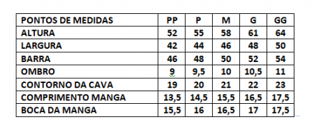 TABELA DE MEDIDAS (centímetros) FEMININA – BABY LOOK