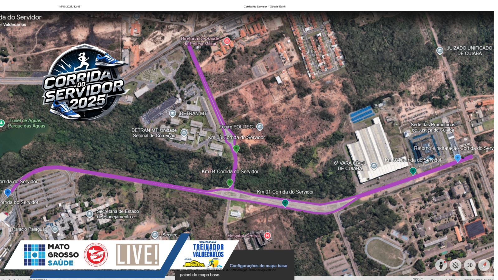 A CORRIDA DO SERVIDOR será realizada no dia 26 de outubro de 2025 (domingo), com largada às 06h00 e concentração a partir das 05h00, na Av. André Maggi, 6 - Centro Político Administrativo.