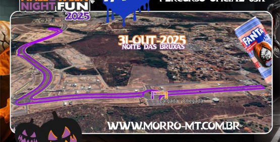 Art. 1º – A Corrida Temática Halloween Night Fun 2025 ocorrerá no dia 31 de outubro de 2025, com largada às 21h no Parque Dubai, (Monumento Ginco Dubai - Ribeirão do Lipa) em Cuiabá-MT, percorrendo distância aproximada de 5 km.