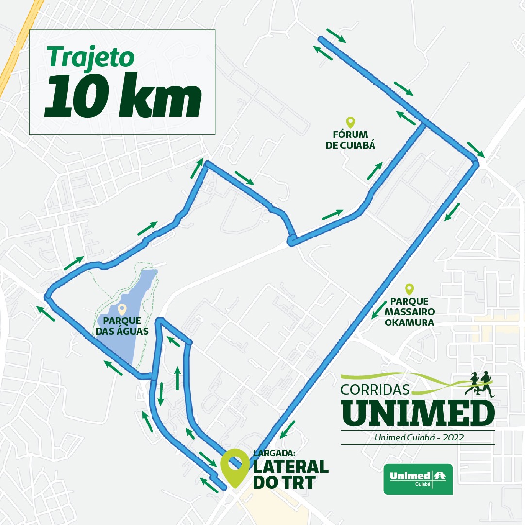 Todo o trajeto será delimitado pela organização e acompanhado pelos parceiros da Unimed Cuiabá no evento (Batalhão da Polícia Militar de Trânsito, Polícia Militar do Estado e Secretaria Municipal de Mobilidade Urbana de Cuiabá – Semob)