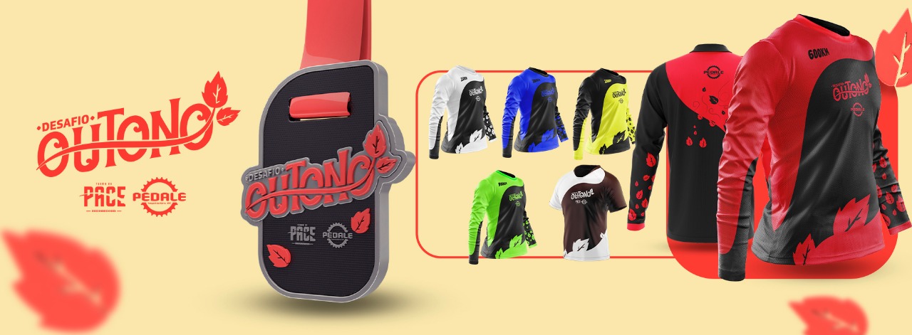 No Desafio de Outono você escolhe se quer “correr OU pedalar” ou se vc quer “correr E pedalar”! No DESAFIO DE OUTONO, como sempre, com o Kit de qualidade espetacular, que visa valorizar cada conquista e incentivar tanto a prática DO CICLISMO (MTB ou SPEED) como as CORRIDAS DE RUA, em ESTEIRA ou CAMINHADA, mas, principalmente acabar com as desculpas para o sedentarismo, proporcionando aos participantes além de um estilo de vida saudável, medalhas diferenciadas e exclusivas, valorizando o esforço por cada conquista e para quem desejar, camisas de treino para ciclismo ou corrida exclusivas.