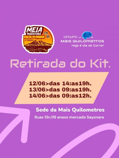 e) O atleta que não retirar o seu kit na data, horário e local estipulado pela organização fica impedido de participar da corrida.