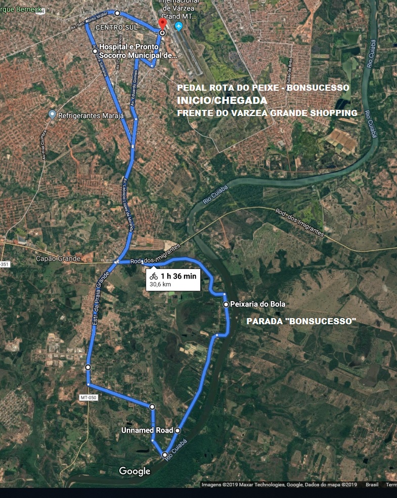 8° O PEDAL ROTA DO PEIXE “BONSUCESSO”, tem o seguinte trajeto: saída da frente do Várzea Grande Shopping, seguindo pela Av. Filinto Muller, Av. Alzira Santana, Estrada da Praia Grande, Comunidade do Pai André, Bonsucesso (Parada para o café da manhã tradicional várzea-grandense), retorno pela Estrada da Praia Grande, chegada na frente do Várzea Grande Shopping.
