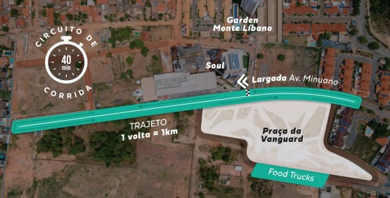 Artigo 2. A largada será às 19h00min. O percurso será na Av. Minuano, bairro Bom clima (praça da Vanguard) com qualquer condição climática (exceto se aparentar riscos aos participantes). O mapa do percurso será divulgado até 8 dias antes no site www.morro-mt.com.br.